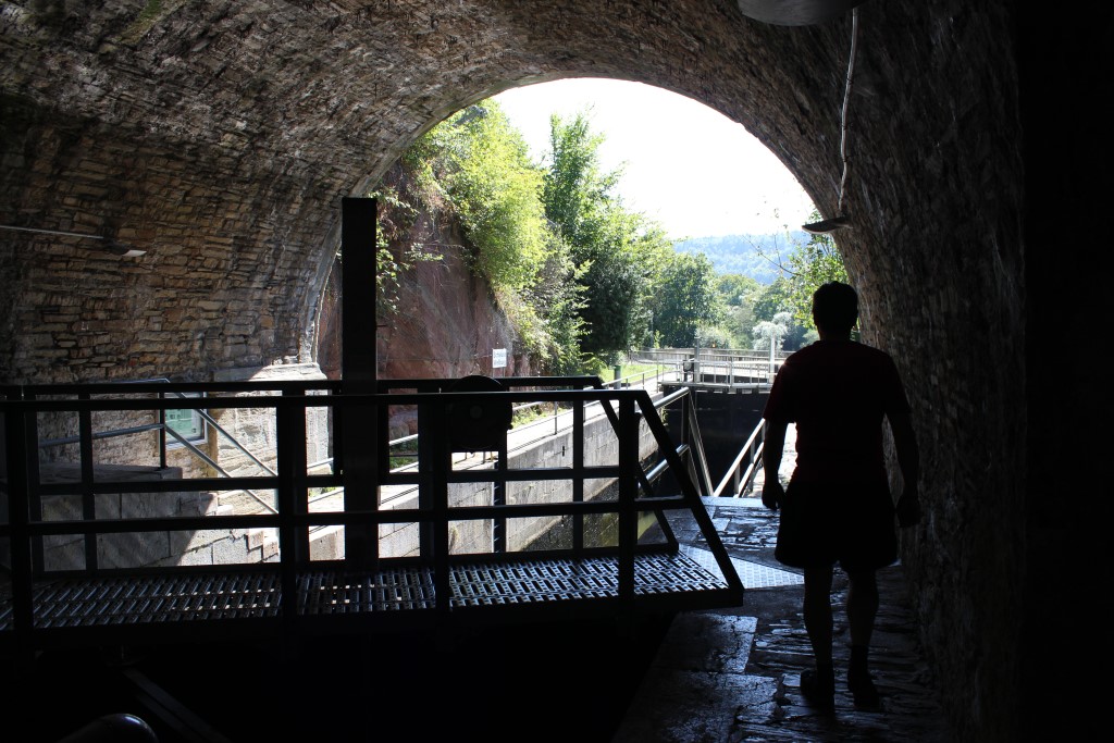 erinnerte. Bei km 43 bei der Ortschaft Gräveneck legten wir um 13:20 Uhr eine kleine Saftpause um 13:20 Uhr ein. So gelangten wir nach 47 km zum Schiffstunnel Weilburg,
