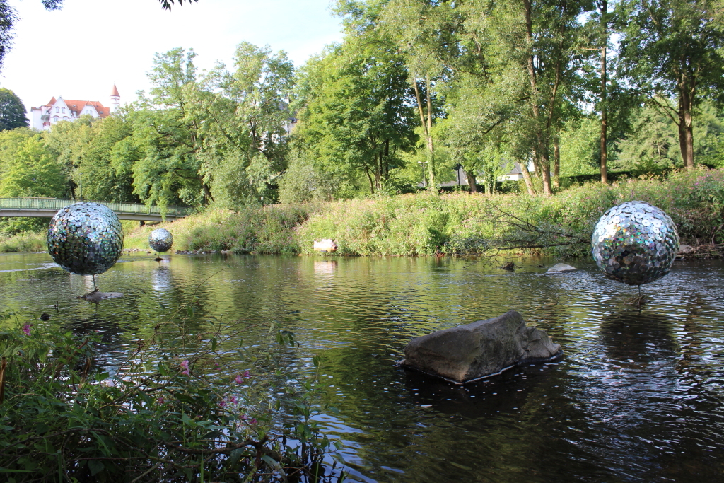 überquerten wir neben den Eisenbahngleisen und das Tunnelportal im Rücken die Ruhr. Kurz schauten wir uns den Bahnhof an und dann stießen wir auf Kunstwerke in der Ruhr